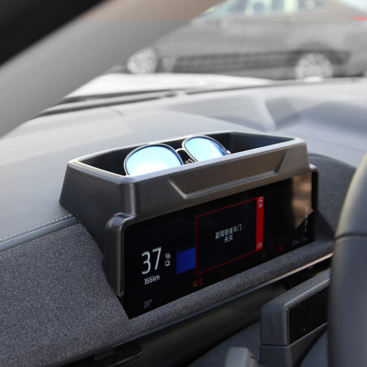 【Unique design】This center console storage is placed on back of the meter screen,convenient to put and take objects for driver when driving,does not block sight vesion,ensureing your safety driving