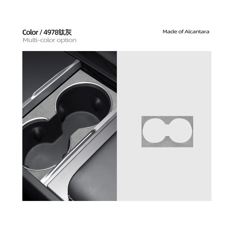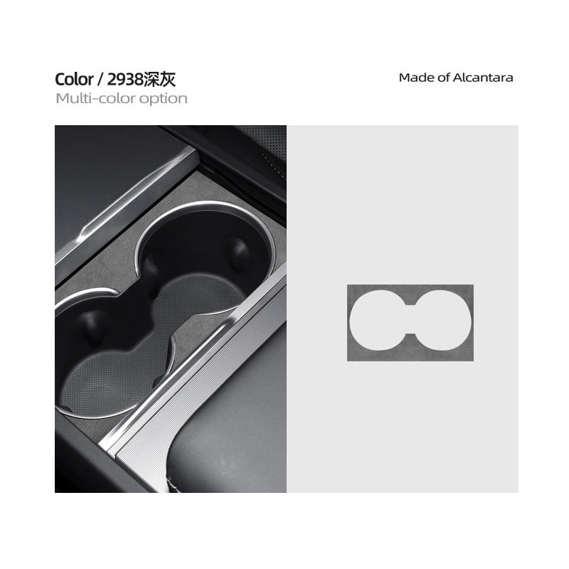 【Car Model】Evtsparts Alcantara Conter Console Water Cup Holder Cover is fit for tesla model 3 highland 2023 2024, The surface sports Alcantara suede design, which is beautiful and fashionable, and enhances the interior decoration.it can protects your console from scratches, scuffs, and other damage.