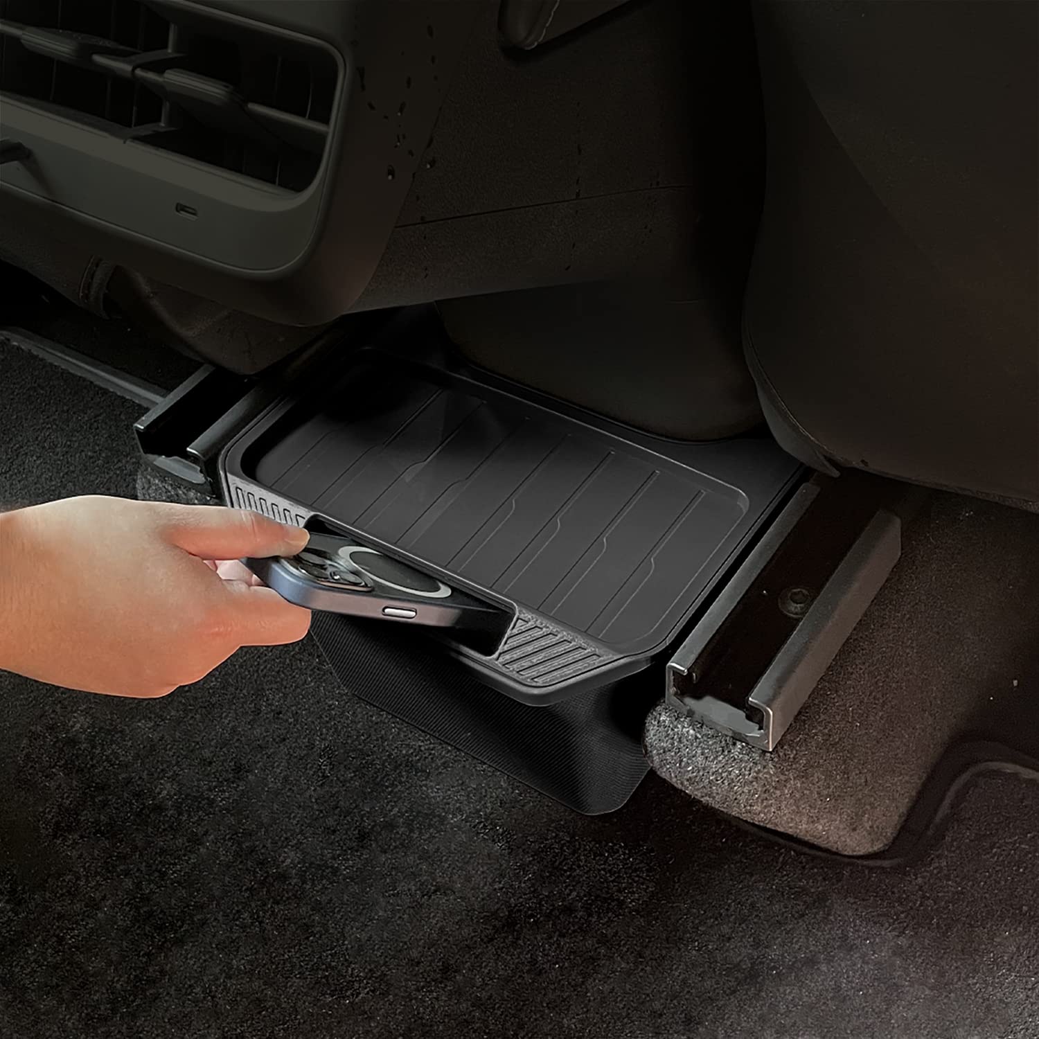 【Premium Materials】The model y backseat center console organizer is Made of high-quality TPE material, which is non-toxic and tasteless, effectively prevent scratches, mess and reduce noise.Quality design makes your car interior look integrated.