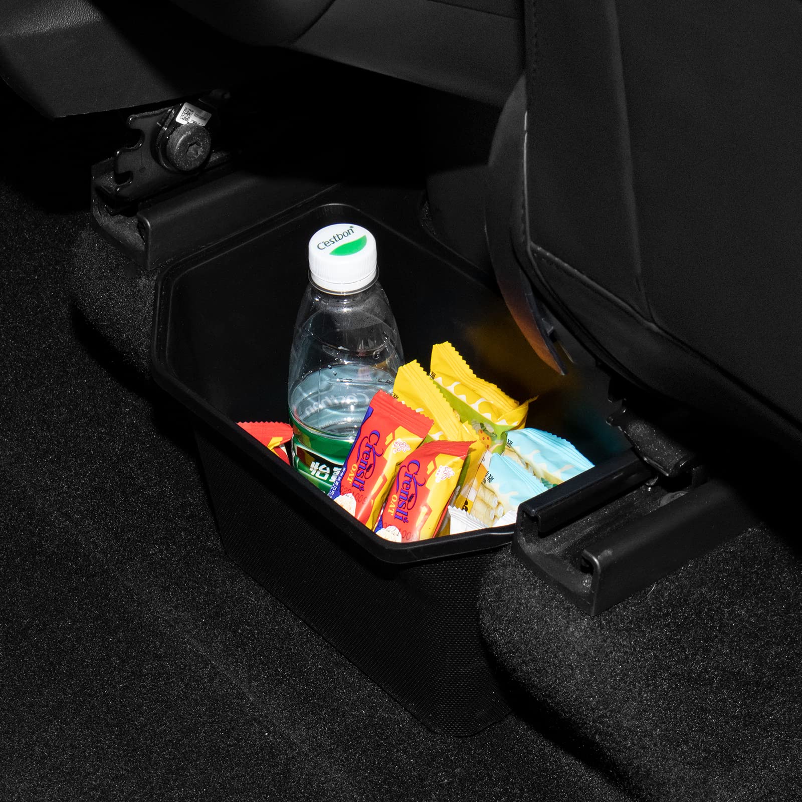 【Easy To Install】Evtesparts model y rear seat center console organizer's back with Velcro strip, just insert it into the second-row seats, easy to install without any tools.
