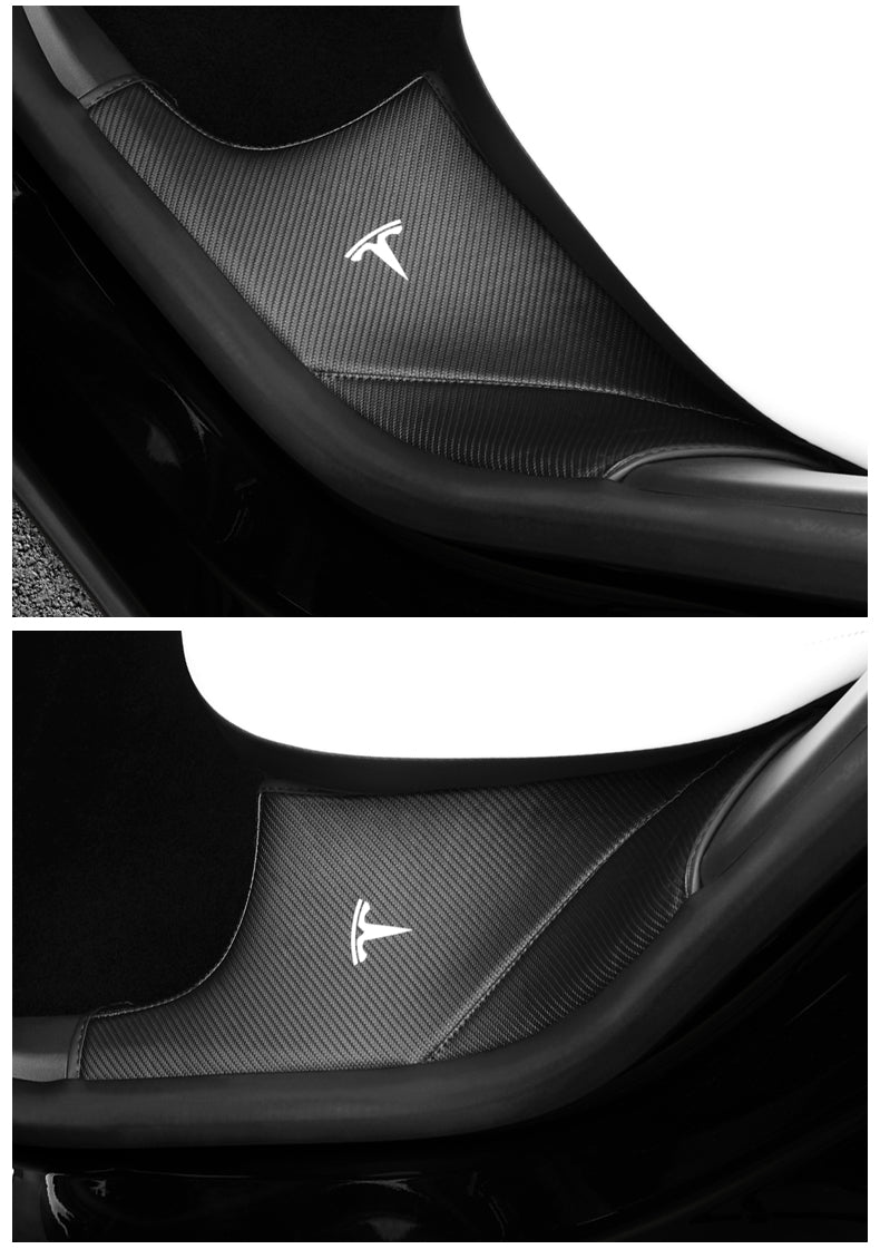 Tesla Model 3/Y Rear Door Sills Leather Threshold Strip Anti Kick Pads