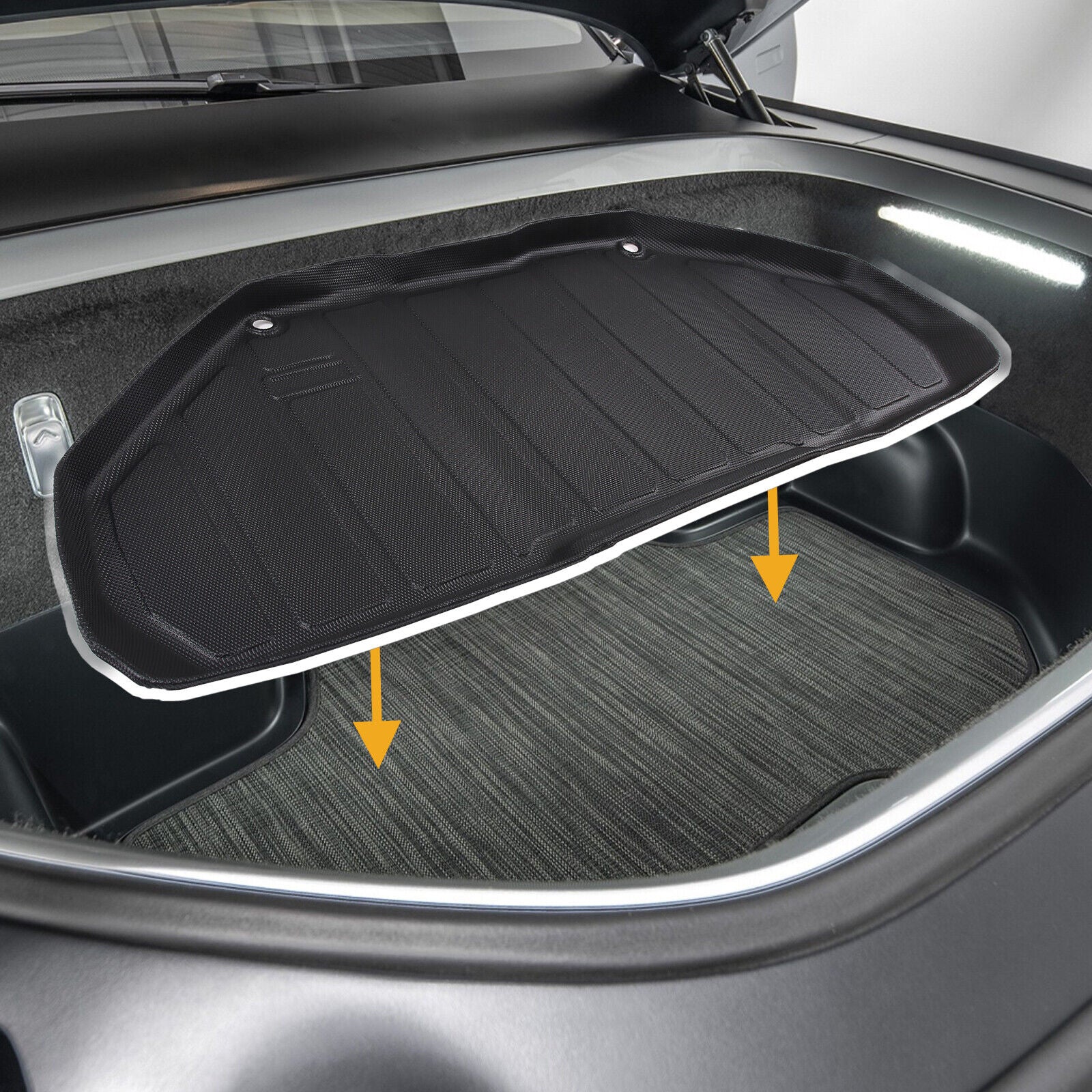 【Car Model】The Evtesparts front trunk mats is designed exclusively for the 2022 2023 Rivian R1T, featuring upper and lower layers