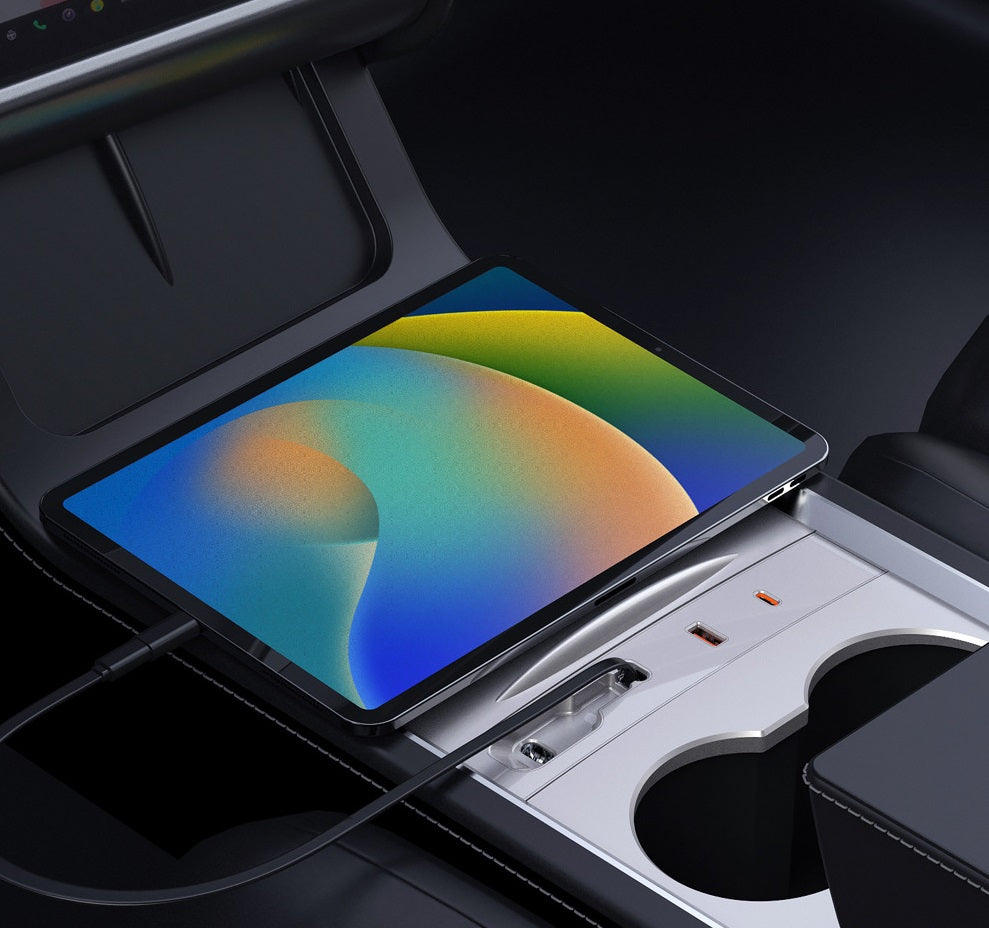 【Car Models】 Evtesparts Retractable USB Hub Docking Station is fit for tesla model 3 highland 2023+, Original car 1:1 scan and mold opening, dedicated to special cars, Three devices can be charged at the same time, instantly relieving anxiety about power consumption and making long-distance driving less boring.