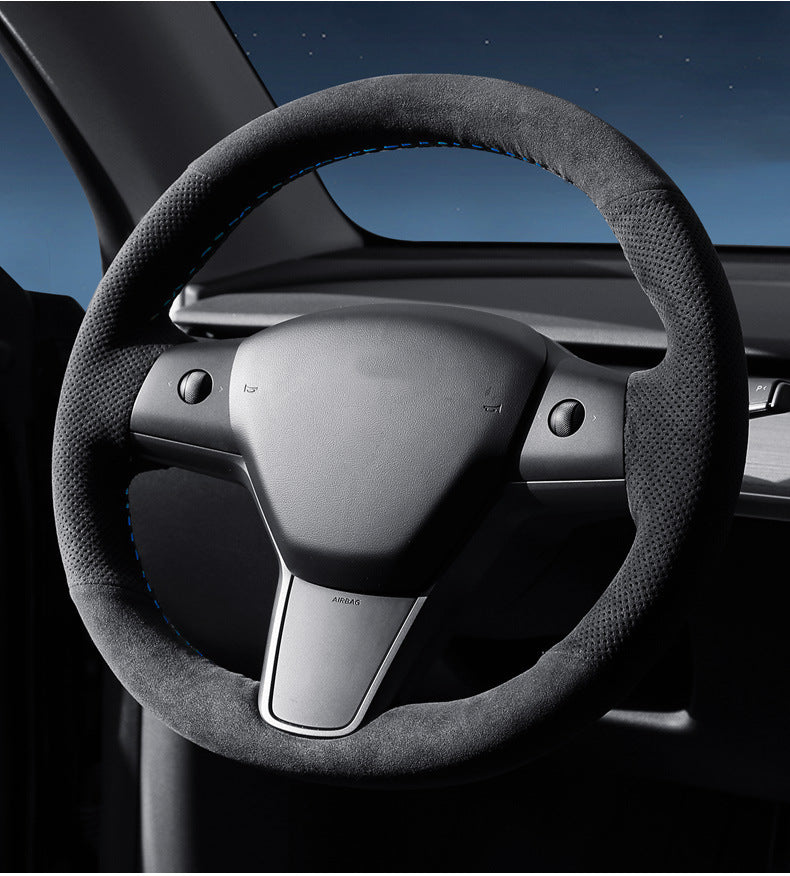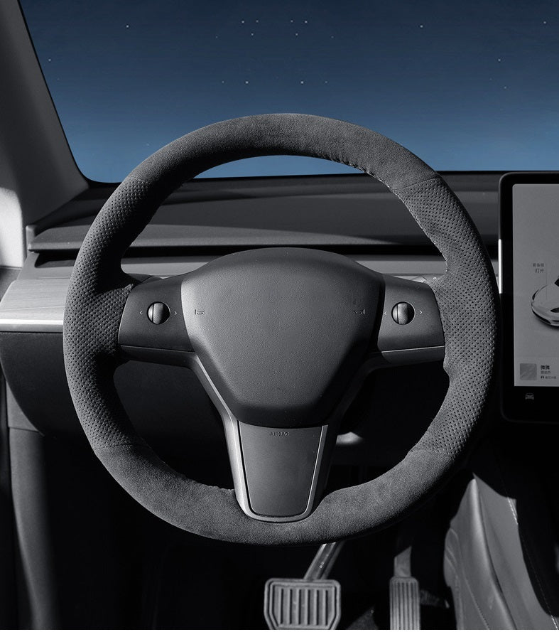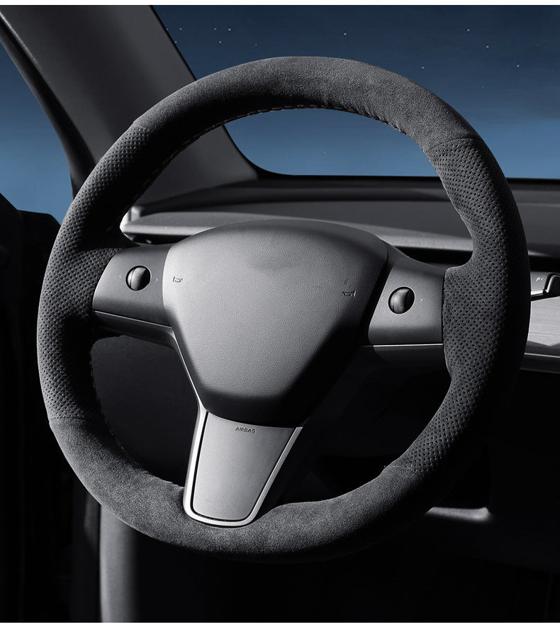 Tesla Model 3/Y Alcantara Hand-sewn Steering Wheel Cover