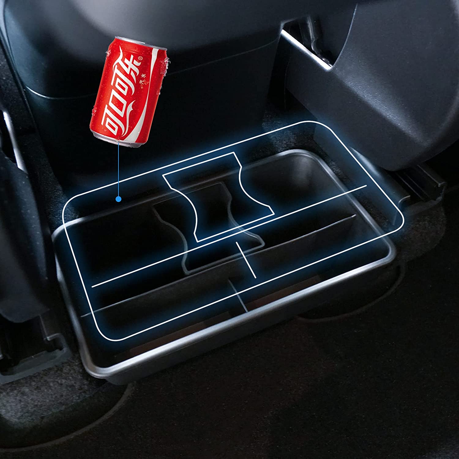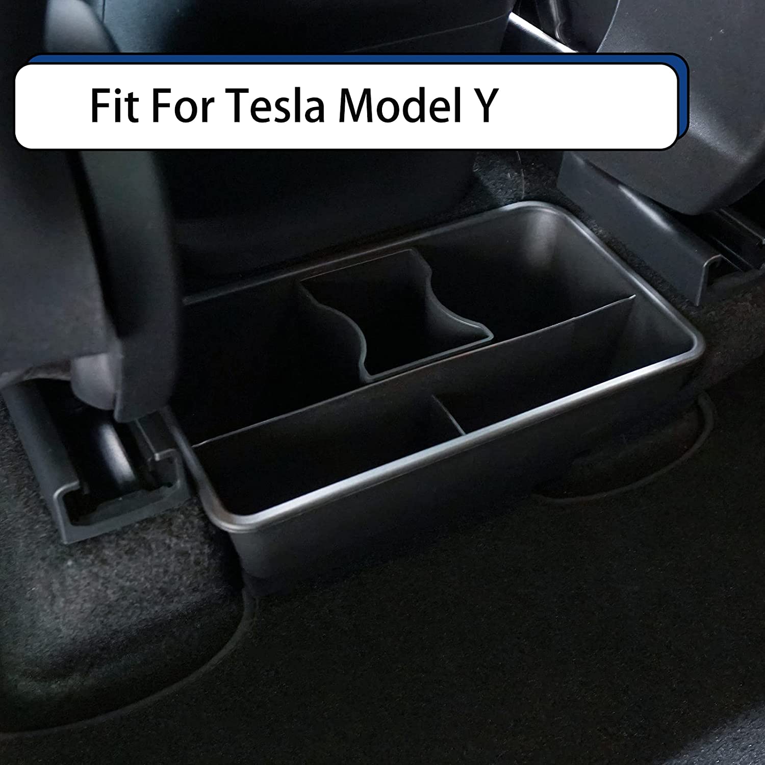 【Perfect Match】This Rear Seat Storage Cubby and Cup Holder fits perfectly under the rear exhaust port of Model Y, with no gaps and does not affect the footpad.