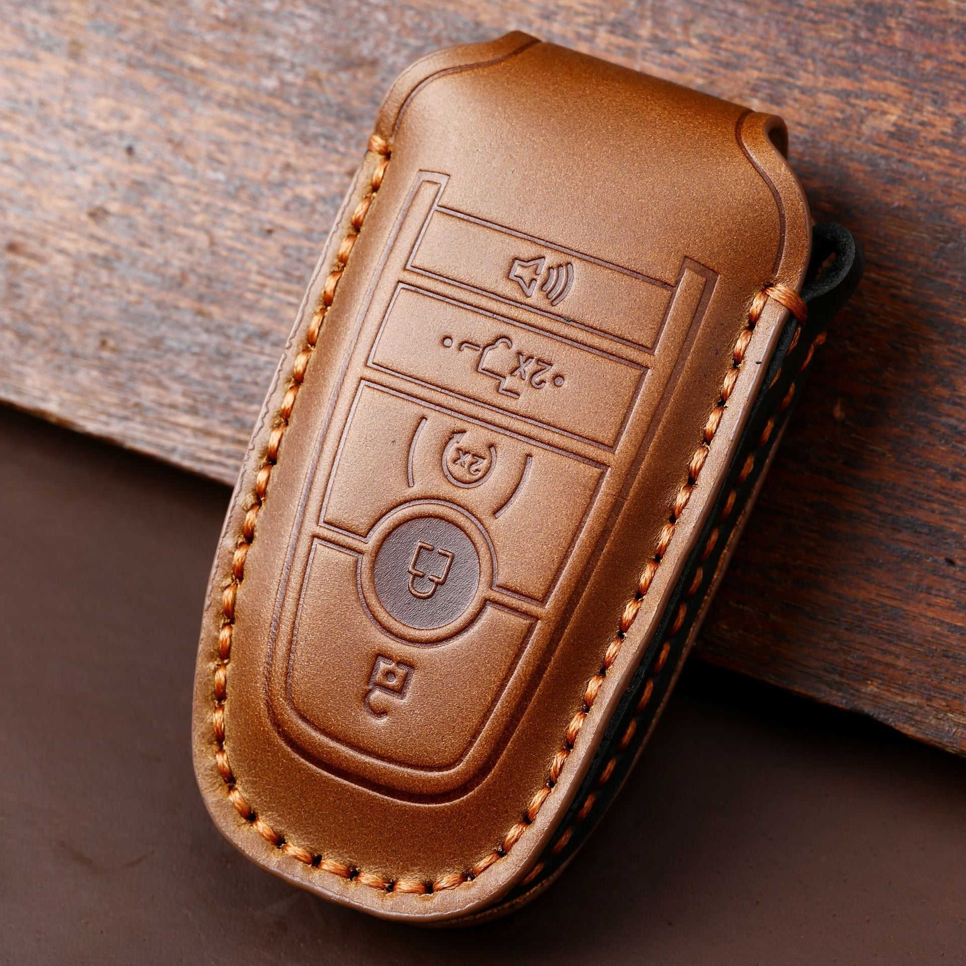 Elevate your key’s protection with this timeless leather key Fob cover – where tradition meets innovation. Handmade from quality top-grain cowhide leather, it offers unmatched softness, natural texture, and against scratches.designed exclusively for Ford F150 owners who value luxury and durability.