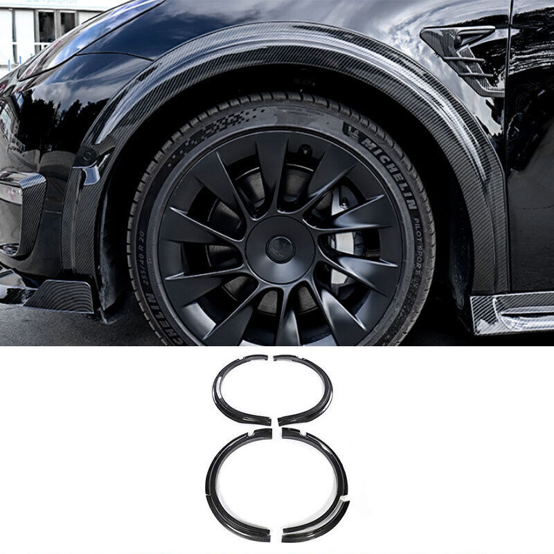 【High Quality Material & Durable】This Side Wheel Arch Fender Flares is made of high quality ABS materials with smooth carbon fiber patten,Gives your Model Y a completely unique sporty look.