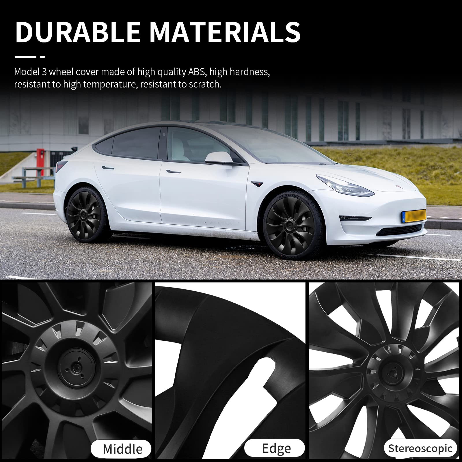 【Fashionable Sporty Design】Evtesparts model 3 wheel cover adopts the design of the turbine, which effectively reduces the wind resistance and enhances the sense of power and movement. original car 1:1 mold opening. completely matching your model, seamlessly connecting,