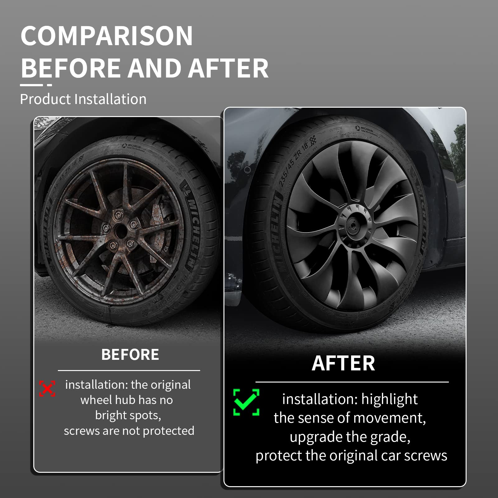 【High-Quality Materias】Evtesparts Model 3 wheel cover is made of high-quality ABS matte material, high hardness, waterproof high temperature resistance, durable and does not fall off the paint. this rim protector effectively protects your wheels from scratches.
